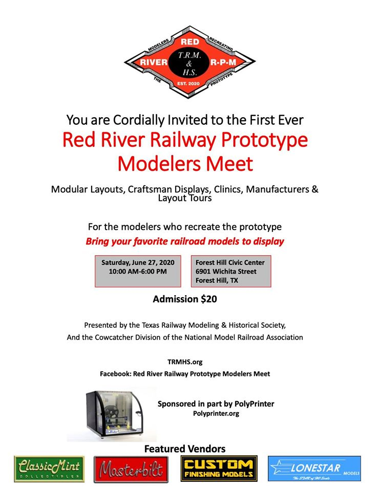We are very pleased to announce the 1/87 Vehicle Club will be participating in the inaugural Red River Railroad Prototype Modelers Meet to be held in Forest Hill, Texas (Ft. Worth, TX area) on Saturday, June 27, 2020. We will be collaborating with the Railroad Prototype Modelers (RPM) group that organizes this show. While primarily a show intended for serious railroad modelers, we want to establish a strong contingent of very high quality 1/87 vehicle models for display. We have elected to capitalize on this presence and participate in the first meet in the Dallas/Ft. Worth area and hope to help make this an annual event. We have secured commitments from several 1/87 vehicle model manufacturers and vendors to appear at this show. Already confirmed are Lonestar Models, Custom Finishing Models, Zycon Models, and Masterbilt Models. We don't anticipate needing advance registration for participation in this show but please remember, this is a first come-first served basis for securing display table space. We would, however, like to gauge interest. It should be noted this is a Saturday only show. For now, check out the latest on the group's Facebook page. |