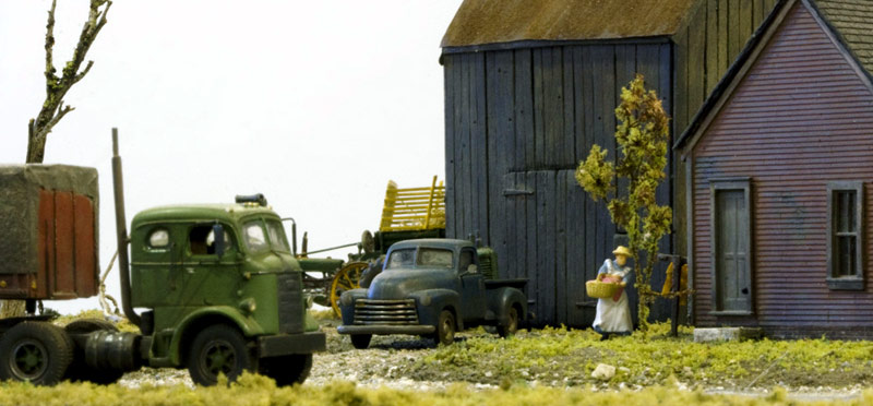 You may recognize the photo above as one of the first Route87 modules publicly displayed at the 2010 East Coast Meet in W.Springfield, MA, January 30-31, 2010. The module was built by Chester Fesmire and he's agreed to share some of his basic building techniques using the Route87 standards. We thank Chester for sharing his building tips! The 2010 Springfield show saw the first of the Route 87 modular dioramas on public display. And although the numbers of modules were small, they provided a great deal of interest and showed many just how well our vehicles are validated in a realistic setting. ![]() © Drawing courtesy of Chester Fesmire We start with the module standards for the basic Route87 module. These dimensions should be strictly adhered to so that interconnection of modules is possible for public display, the main purpose of the standards. This basic module is the first of what we anticipate will be several standard configurations governing different types and styles of roadways. This first basic standard is for two lane, paved (asphalt) roadway configuration. Please refer to the Route87 web site for the latest updated standards. The basic construction materials needed for building the standard module are: I believe we have come upon a good set of standards for the modular display and would like to briefly review them and try to give some recommendations on how to best construct them. The dimensions we have all agreed on are 6 inches in height, 18 inches in depth and widths from 24 inches to 48 inches (typically; can be shorter or longer with transport considerations being the determining factor in most cases). The Busch roadway (Busch # 9710) offers a good two lane highway that we have established a 3-1/2 inch distance to the centerline from the front of the module for its location. This allows for a lot of usable space behind the road to present additional vehicles, structures, figures and scenery. For materials, the base used is 2 inch extruded styrofoam and the only requirement is that the roadway portion meet at precisely at the 6" height and be the determined 3 1/2" from the front so each module's roadway meet evenly with any accompanying modules. Aside from these dimensions, the styrofoam may have changes in elevations elsewhere throughout the module. The next critical material is the front and back platforms that hold the module up. 1/8th inch Masonite is used for this and in the sample module I made for the 2010 Springfield show, I sprayed the exposed faces with satin black enamel (highly recommended, likely to become part of the standard. Raw Masonite takes wood glue very well and to support the 2 inch styrofoam, I simply glued a strip of 3/4" x 3" pine to the inside, 2 inches down from the top of the Masonite. To affix the styrofoam and hold the front and back to the styrofoam, I used a latex adhesive caulking. There is caulking available exclusively for use on extruded styrofoam also. Be advised that some of the construction adhesive caulks (Liquid Nails, PL 400 etc.) are not conducive to use with the styrofoam and will deteriorate the styrofoam, so stick with a latex based adhesive product. This literally holds the whole unit together.