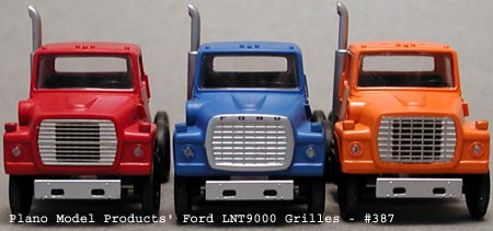 Plano Model Products has introduced a pair of replacement grilles for the Atlas Ford LNT9000. There are two separate grilles in each package made from photo-etched stainless steel. The models shown above on the left and right have the Plano grilles installed (the middle one is the stock Atlas grille). These are extremely useful accessories; we applaud Plano's continuing efforts to supply modern 1/87 truck modelers with such items!
