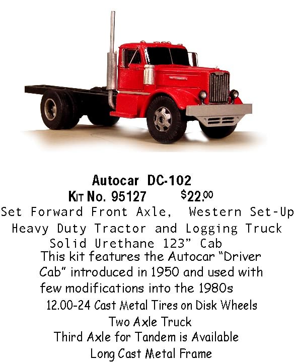 Sheepscot has just released their latest two kits, #95126 for the Autocar DC-97 with setback front axle and #95127 for the Autocar DC-102 with set forward axle. Both are available immediately.