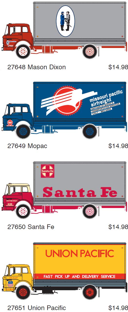 Athearn has announced their Ford C box truck in four new paint schemes shown above. Expected delivery is March 2007.