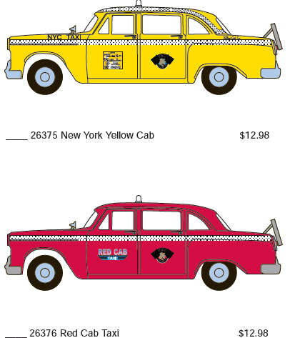Athearn has announced four new paint schemes for their Checker A8 cab model. Expected delivery is January 2009.
