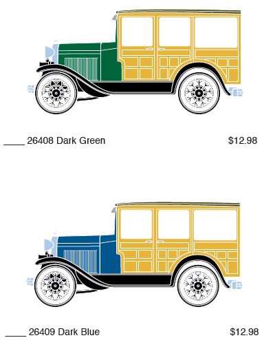 Athearn has announced an all new model of a 1931 Ford Model A "Woody" in four paint schemes shown above. Expected delivery is January 2009.