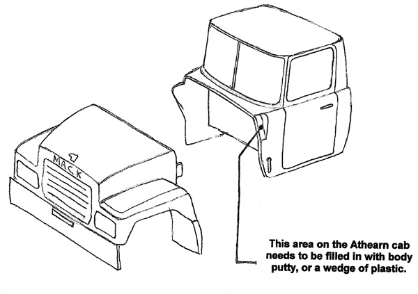 Masterbilt Models has released an unpainted resin casting for a Mack RD600 hood designed to fit the Athearn Mack R cab. This casting is designed for experienced modelers and requires modification of the Athearn cab as shown in the sketch above. The hoods are available immediately from Truck Stop Models.