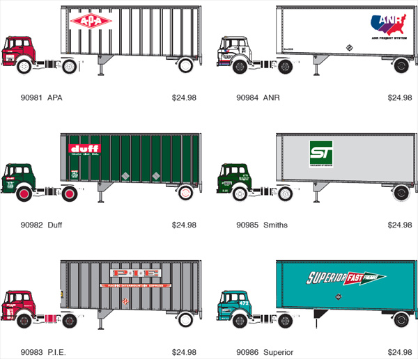 Athearn has announced 3 new smooth side and 3 new rib side pup offerings utilizing the former A-Line trailer tooling in the paint schemes shown above. Expected delivery is October 2009.