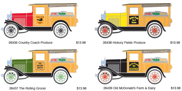 Athearn has announced a new release of paint schemes for their Ford Model A Huckster models. Delivery is expected in March 2010.