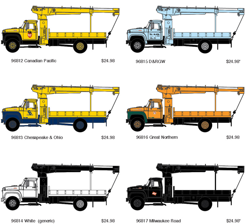 Athearn has announced a new release of their Ford F-850 boom trucks in the paint schemes shown above. Delivery is expected in August 2010.