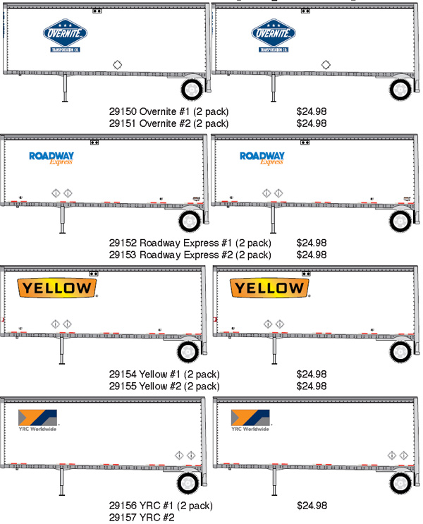 Athearn has announced a new release of their 28' pup trailers in the paint schemes shown above. Delivery is expected in February 2011.