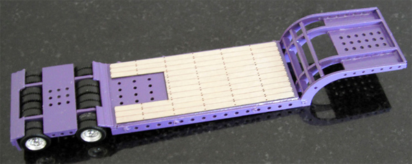 Kulak Custom Kits has introduced a laser cut styrene kit for a western style lowboy trailer. Shown above is an assembled display model using one of the new kits. Also available are a laser cut styrene belly dump trailer and adhesive simulated marker and tail lights. Offered exclusively through Truck Stop Models.