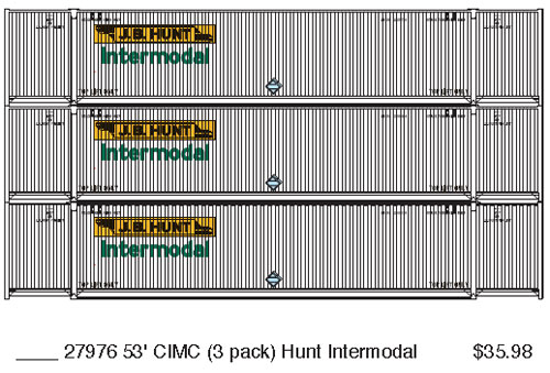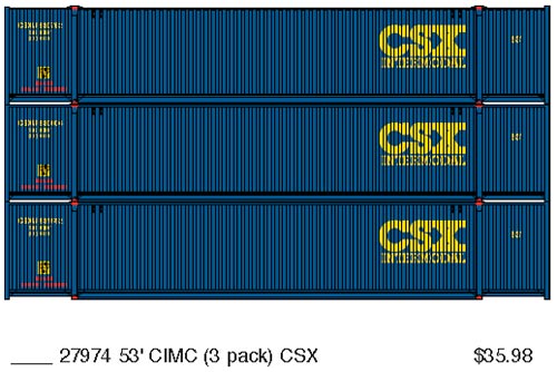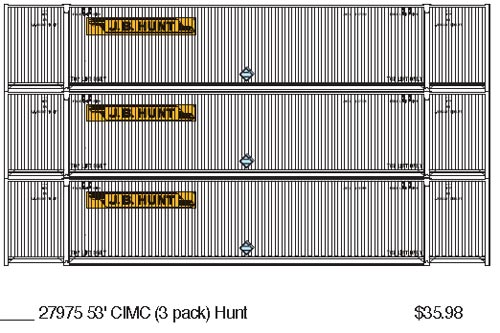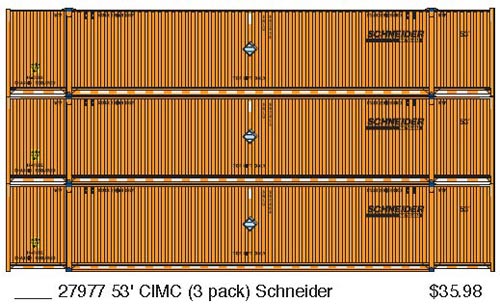 Athearn has announced a new release of the 53' CIMC domestic containers painted in the schemes shown above. Delivery is expected in November 2011.