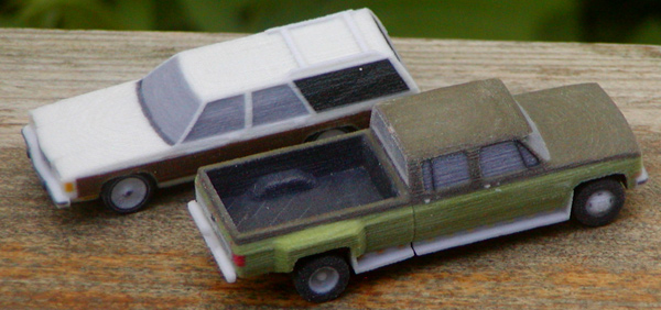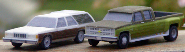 Jens Jahn continues to expand his offering of model kits of North American vehicles produced on a 3D printer. He is offering these through his web site: www.jahn3d.de. The models are hollow body kits with tires separately applied which can be sanded and painted. Shown are a 1986 Mercury Colony Park and a 1987 Chevy Silverado Dually.