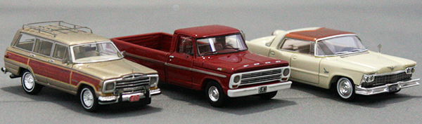 Neo Scale Models latest offerings are now available in North America from Truck Stop Models in very limited quantities. Shown above from left to right are a 1986 Jeep Wagoneer, 1968 Ford F-100 pickup, and 1957 Chrysler Imperial Crown Southampton.