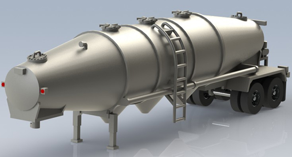 Barry Clements (baztrains) introduces a series of LPG (Propane) transport tank trailers and continues to expand his offerings of pneumatic bulk hopper trailers. The larger propane transport trailer is offered in both two and three axle versions. The new pneumatic bulk trailer is of an old late '50s-'60s Fruehauf design. The previously introduced modern design similar to the Heil 1040 cu.ft. design has been updated to include end caps for the trailer. These models are printed using 3D printing process and offered through Shapeways.