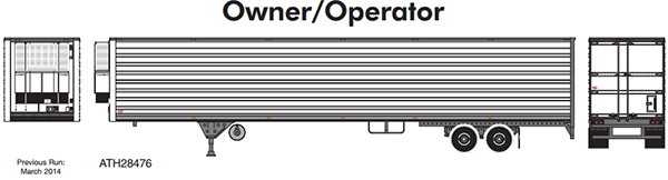 Athearn has announced q new production run of the 53' Utility refrigerated trailer in the "Owner/Operator" paint scheme of white with no company markings. Delivery is scheduled for February 2015. [posted 07/06/2014]