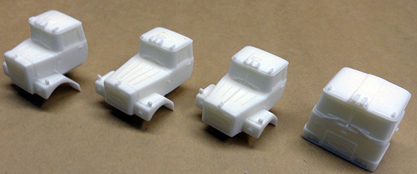 Ralph Ratcliffe Models announces several new resin kits and model truck components. Shown at top is the new Mack M75SX dump truck with high capacity coal body (coal body available separately). Shown above are four new Brockway cabs, each sharing cabs with their respective Mack Truck counterparts of the era. William has also released a generic frame kit in two lengths. Check the Ralph Ratcliffe Models web site for more information. [posted 07/14/2014]