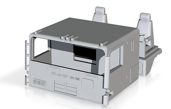 Paul Kittle is offering on Shapeways an updated and revised version of his Dodge LNT1000 COE tractor cab introduced in our May 2015 New Products. The cab is produced with a 3D "printing" process and is composed of two pieces, the upper cab structure and the lower cab with floorboard and interior. As a bonus of the redesign the price has been lowered by $10! [posted 07/05/2015]