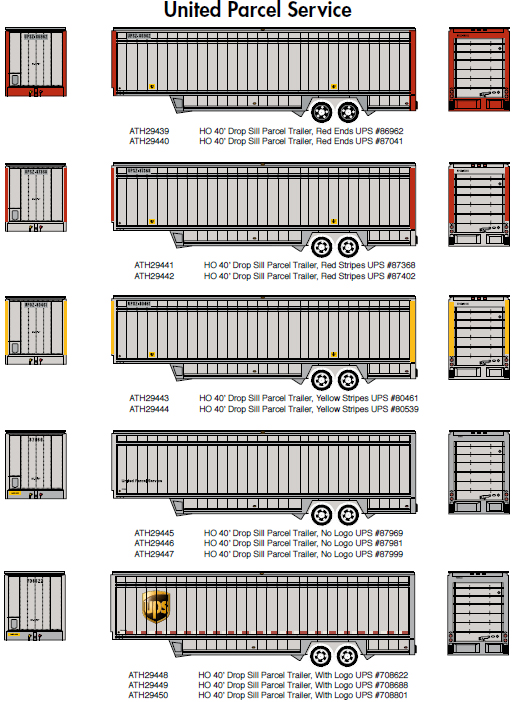 Athearn has announced a new production run of 40' drop floor van trailer models in the five paint schemes as shown above. Estimated delivery is September 2017. [posted 11/01/2016]