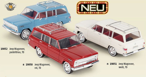 Brekina recently announced a series of Jeep Wagoneer models in 1/87 scale in various colors as shown above. HO-Modelautoclub Nederland is reporting (with photos) a Jeep Gladiator pickup is coming soon! [posted 04/05/2017]