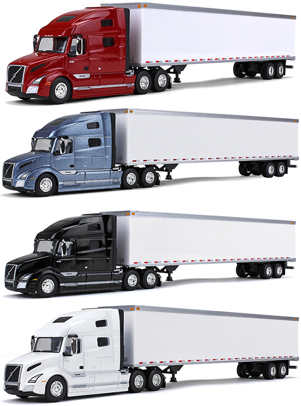 First Gear recently announced another all an new 1/87 scale Volvo, this time the new VNL760 sleeper cab truck tractor model in the four colors shown above paired with a 53' van trailer. The truck tractor represents the recently introduced prototype VNL760 with all new tooling. We again wholeheartedly welcome another new addition from First Gear. [posted 07/18/2017]