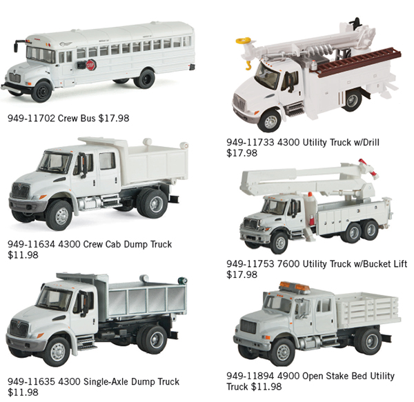949-11634 4300 Crew Cab Dump Truck $11.98 949-11635 4300 Single-Axle Dump Truck $11.98 949-11733 4300 Utility Truck w/Drill $17.98 949-11753 7600 Utility Truck w/Bucket Lift $17.98 949-11894 4900 Open Stake Bed Utility Truck $11.98