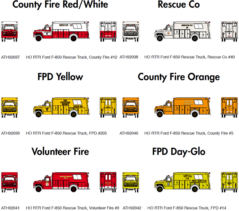 Athearn has announced a new production run of 1968 Ford F-850 rescue truck models in the six paint schemes as shown above. Estimated delivery is March 2018. [posted 05/01/2017]