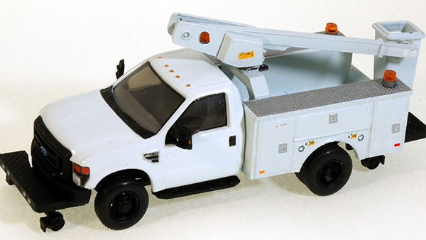 River Point Station has announced the scheduled release of their outstanding 2008 Ford F-450 dual rear wheel cab and chassis model fitted with service body in three configurations to be offered in numerous colors and paint schemes. Shown above are the basic service body with optional beacon strobe light mounted at the rear (above, top), basic service body with optional beacon strobe light mounted at the rear and buyer installed and positioned bucket lift (above, middle), and basic service body with optional beacon strobe light mounted at the rear and buyer installed and positioned bucket lift and hi-rail apparatus installed (above). Delivery is currently projected for late summer 2017 delivery. [posted 05/07/2017]