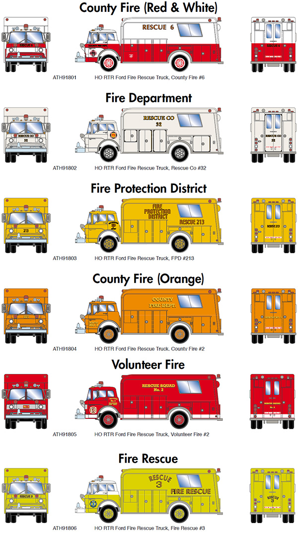 Athearn has announced a new production run of their Ford C series rescue models in the six paint schemes shown above. Expected delivery is December 2018. [posted 01/01/2018]