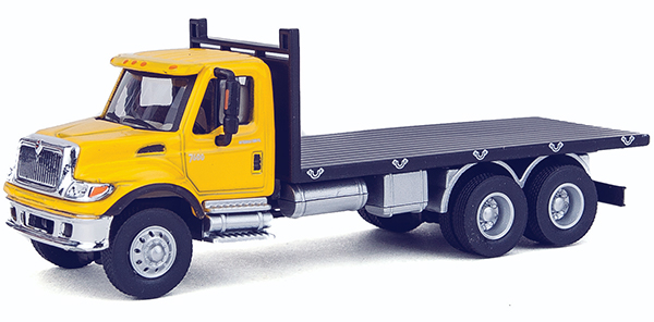 3#949-11652 International 7600, yellow cab, black flatbed body