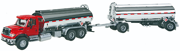 #949-11671 International 7600, red cab, chrome tanker & trailer