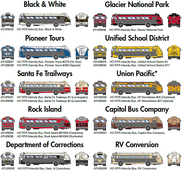 Athearn has announced a new production run of their Flxible highway coach in ten paint schemes shown above. Delivery is expected in January 2020. [posted 02/04/2019]