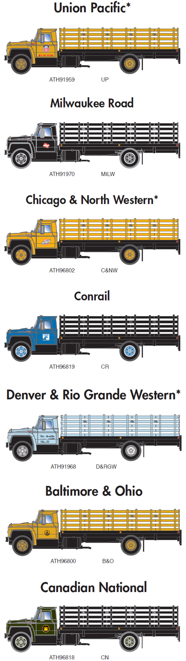 Athearn has announced a new production run of their Ford F-850 stakebed trucks in the seven railroad paint schemes shown above. Delivery is scheduled for March 2022. [posted 03/01/2021]