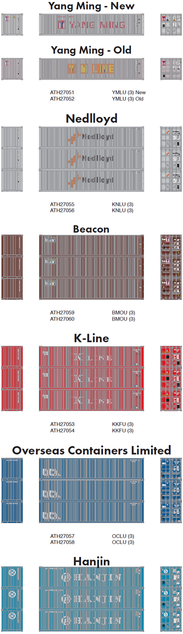 Athearn has announced a new production run of their 40' ocean containers in the six paint schemes shown above. Delivery is expected in November 2022. [posted 10/10/2021]