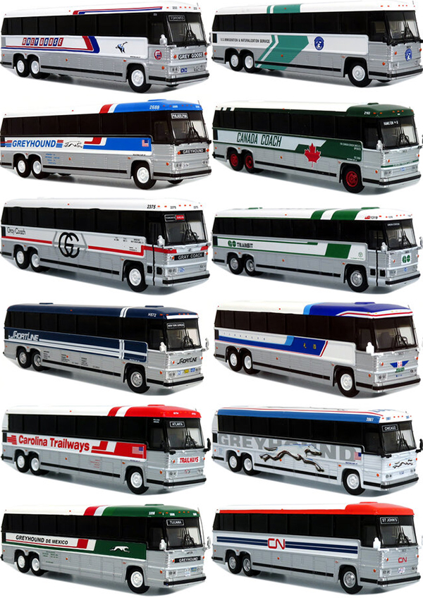 Iconic Replicas has added preproduction painted samples of their MCI MC9 and MC12 intercity motorcoach bus models decorated in the schemes shown above. No release date has been announced. [posted 10/06/2021]