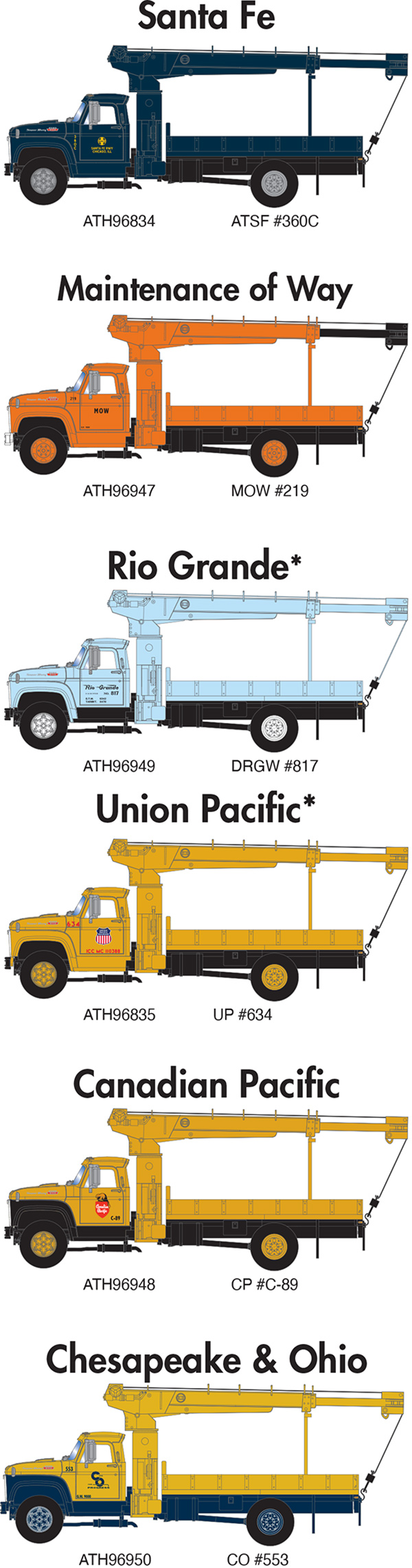 Athearn has announced a new production run of their 1968 Ford F-850 boom trucks in the six MOW paint schemes shown above. Delivery is expected in July 2023. [updated 06/01/2022]