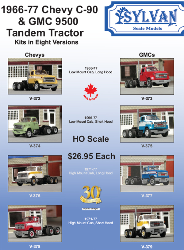 Sylvan Scale Models has announced an all new series of resin kits for various GMC 9500 and Chevrolet C-90 truck tractors. Immediately available from your local hobby dealer or direct from Sylvan. [updated 08/21/2023]