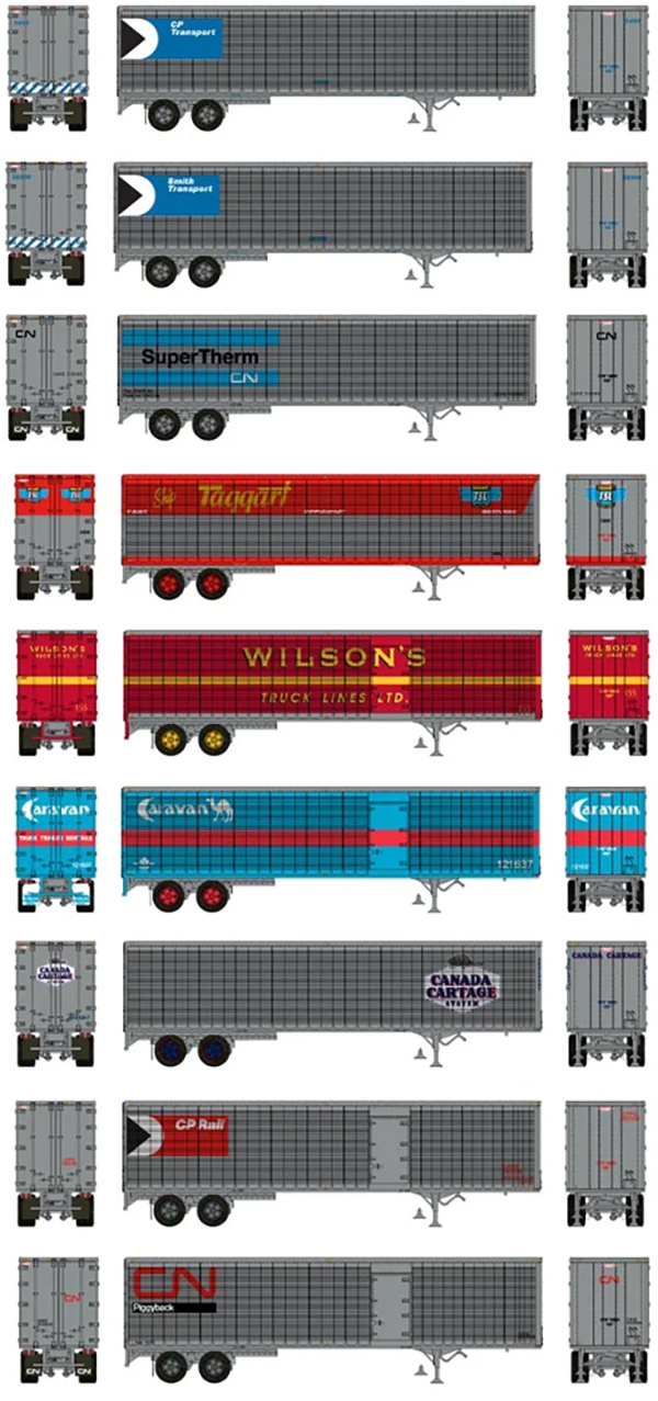 Rapido has announced nine paint schemes for their previously announced 45' Trailmobile Canadian piggyback trailer as shown above. Each scheme will be available in three different unit numbers. No estimated delivery dates announced. [updated 02/18/2024]
