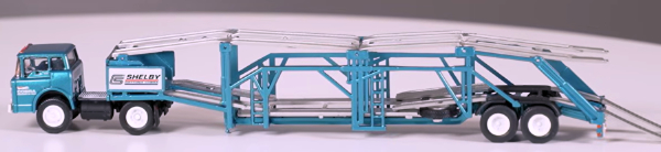 Brekina has announced a pair of new paint schemes on their previously released Ford C-series truck tractor, one with the 45' van trailer in the Bob Sharp Racing/Datsun scheme as shown above and one with the newly released auto transport trailer in Shelby American Racing colors. [updated 02/02/2026]