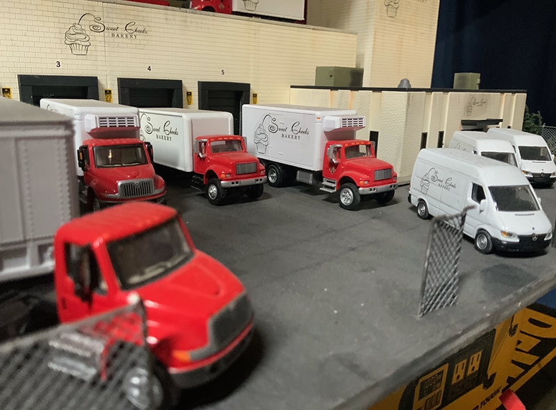 This is the fleet I made for the Sweet Cheek Bakery. All decal were printed by owner and attached to Refer, Box and Tractor and Athearn trailer. Van is a liberty promotions looks more like a model power.
