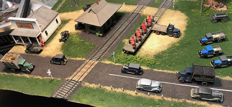 Bill Badger has this Route87 on display at the 2023 East Coast Meet. The railroad station and feed store building are both scratchbuilt. The vehicles are from a variety of sources.
