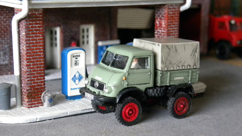 These are the latest RC cars from Hartmut Peters, the Unimog "Frog Eye" version. Above is the "crew cab" four door version and immediately below, the two door version. Both started as Wiking models with R/C motor and servos added by Hartmut.