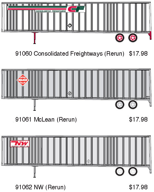 Athearn has announced a rerun release of their 48' wedge trailers in the popular paint schemes shown above. Delivery is expected in April 2011.