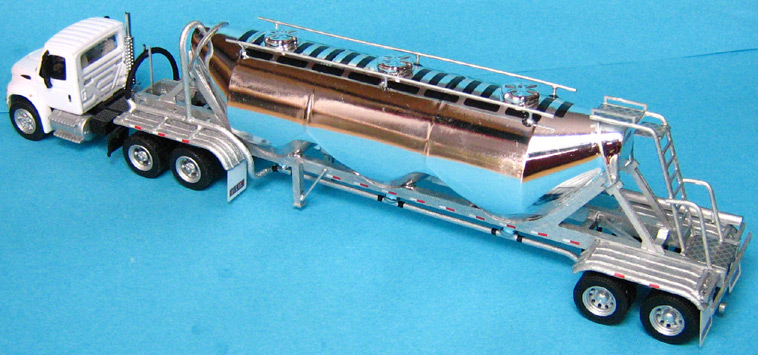 Decalprint will be introducing this new resin and styrene kit for a pneumatic bulk trailer. This kit has some very interesting innovations. The main tank body was prototyped with CAD (computer aided design). The tank body will be chrome plated exactly as shown above. The piping and fenders are 3D printed parts. The ladders are thermoformed Evergreen styrene profiles. All other parts are CNC milled. We're told North American modelers will be able to purchase this kit from Truck Stop Models with an estimated May 2011 arrival.