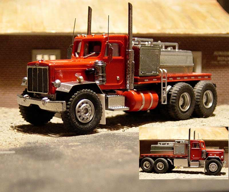 Chester Fesmire modified a Wiking Peterbilt with front pit fenders from aluminum and the tank on the back is from a Smokey Mountain rail car load.