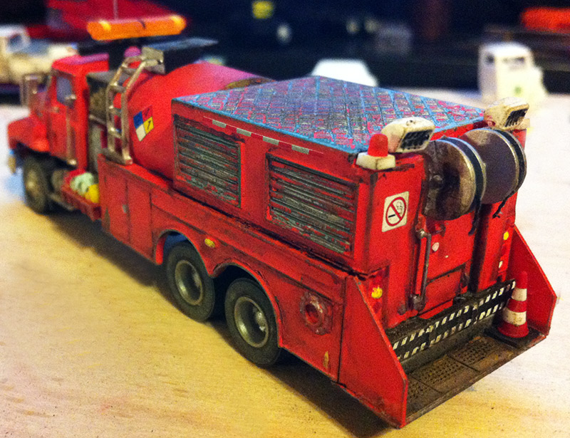 Brian Donato built this Mack CH fuel and lube truck beginning with a Herpa frame and Mack CH cab. Brian added Boley wheels all around with a fuel and lube body kitbashed from Boley fire rescue bodies. Details were added from Roco, Athearn, Herpa, and the parts box. Brian painted and weathered it himself for a more realistic look.