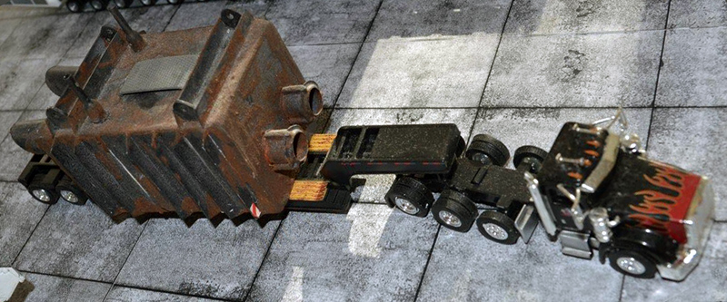 Jürgen Heinrich took a lot of time to built the rusty pieces as shown here on the heavy transport Peterbilt 367. The Peterbilt truck tractor is a Tonkin model. On display at the 2015 Fulda Meet.