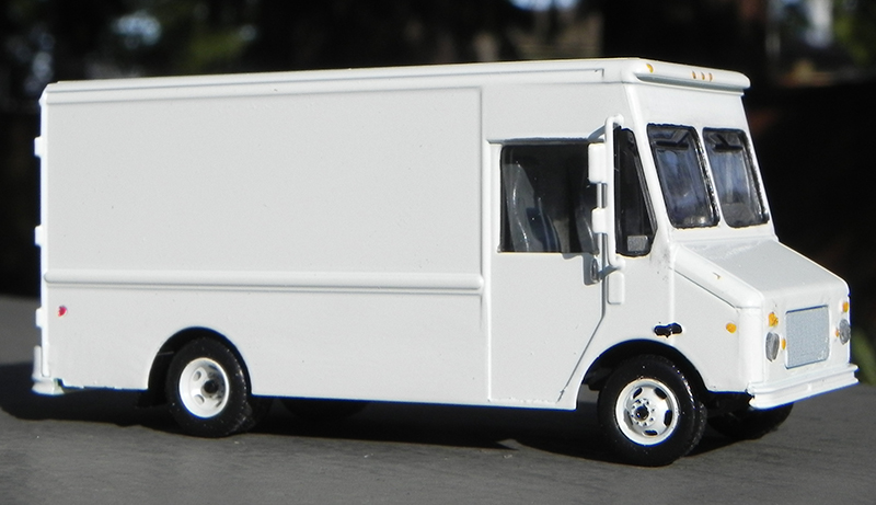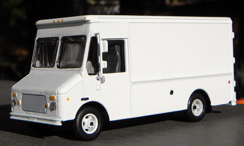 Jim Groeneweg set about recently to model a "typical" Grumman step van model. He did a fair bit of research and found a few variants of the actual model and found for the most part this series van is more at home with 17” wheels and tires, inset axles and MOST do not have the lower rub rail and NONE of the ones Jim found have the raised bead along the bottom of the body. With that said, Jim removed the bead, removed the rub rail and changed the wheels to River Point Station 5 hole steel wheels in white and painted the centre hubs semi gloss black and touched up the lugs nuts. It was dismantled and repainted in GM’s Frost white and detailed.