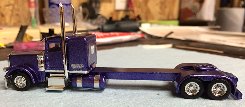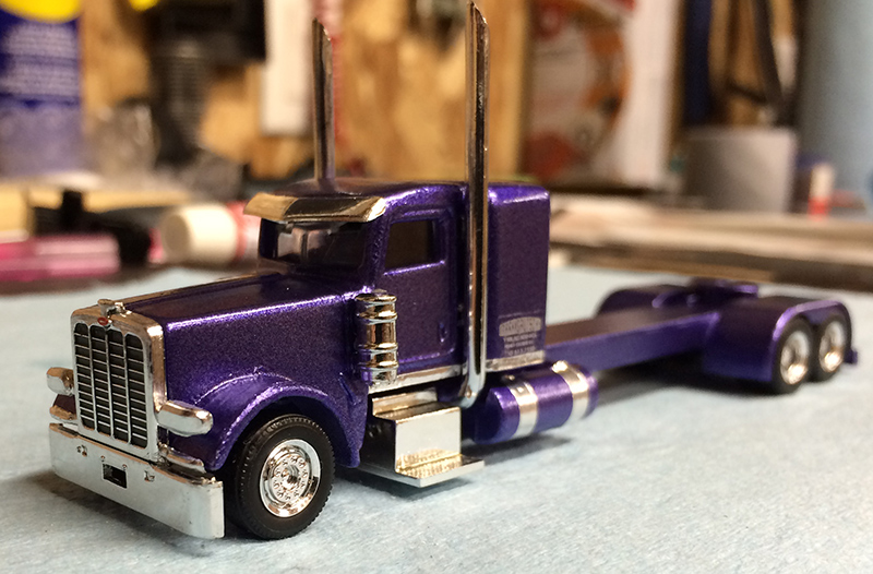 Mark Gautschi stretched and customized a Trucks N' Stuff Peterbilt 389 truck tractor into this very unique model.
