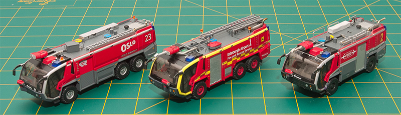 Portuguese modeler Bernardo Lobo admits he's an ARFF fan and modeler. He's transformed and upgraded several Wiking models shown here, based on the Rosenbauer Panther 6x6. Shown in the photo above, from left to right : Rosenbauer Panther 6x6 Oslo Airport, Rosenbauer Panther 6x6 USWB Edinburgh Airport, and the Rosenbauer 4x4 Krakow Airport. Shown below is the standard Wiking model.