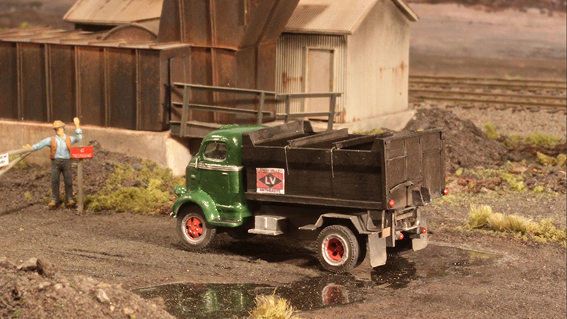 Wayne Sittner built this vintage coal delivery truck model using a Sylvan '41-'47 Ford COE resin kit with a scratchbuilt dump/delivery bed. Photographed on Wayne's model railroad.