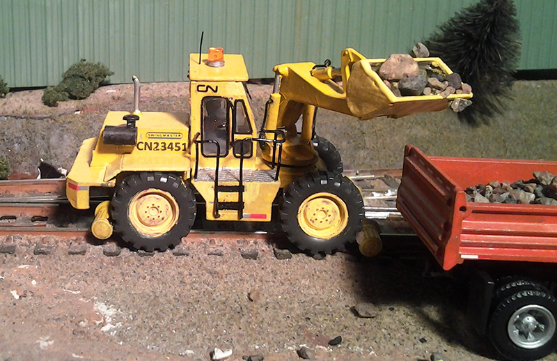 Tom Fitzpatrick built this Swingmaster with loader bucket attachment from a Custom Finishing Models pewter kit. The wheels have been swapped out for some from the scrap box. The unit has been painted and decals for Canadian National; the hand rails and details were made from beading wire.